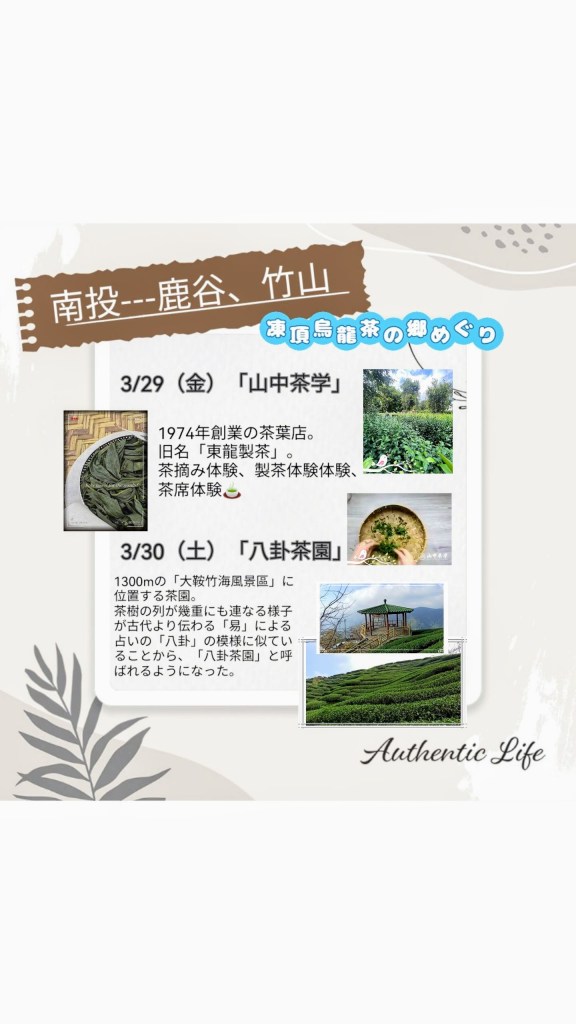 南投県「山中茶学」にて、台湾茶摘み、台湾茶製作、台湾茶席体験。